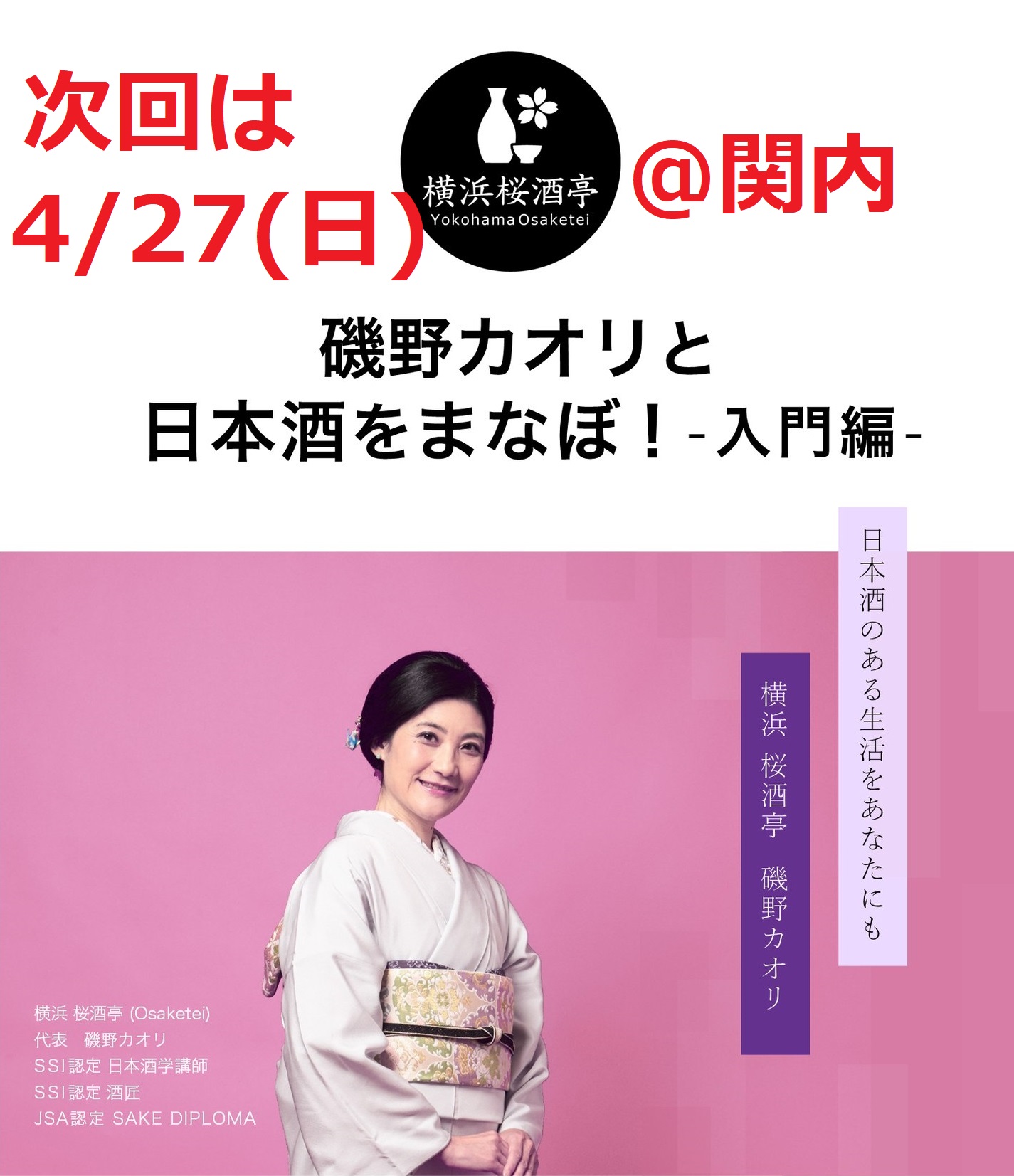 【次回は12/21(日)】「日本酒ナビゲーター認定 テイスティング&ペアリング入門」@関内/馬車道